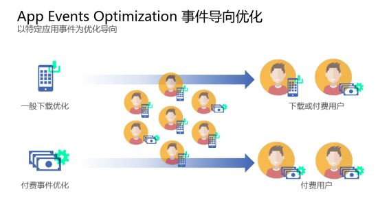 Facebook称,他们的优化方式与传统的下载优化不同——团队采用了付费事件优化。在这种优化下,广告可以直接定位到其平台 20亿人群中的付费和高质量用户身上。